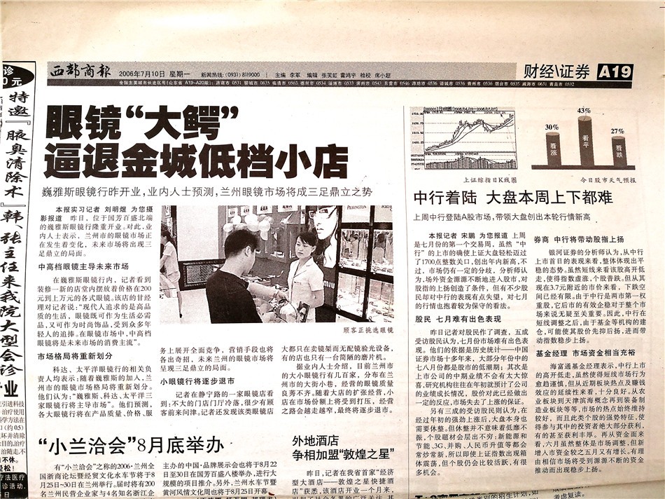 巍雅斯眼鏡行開(kāi)業(yè) 大鱷逼退金城低檔小店