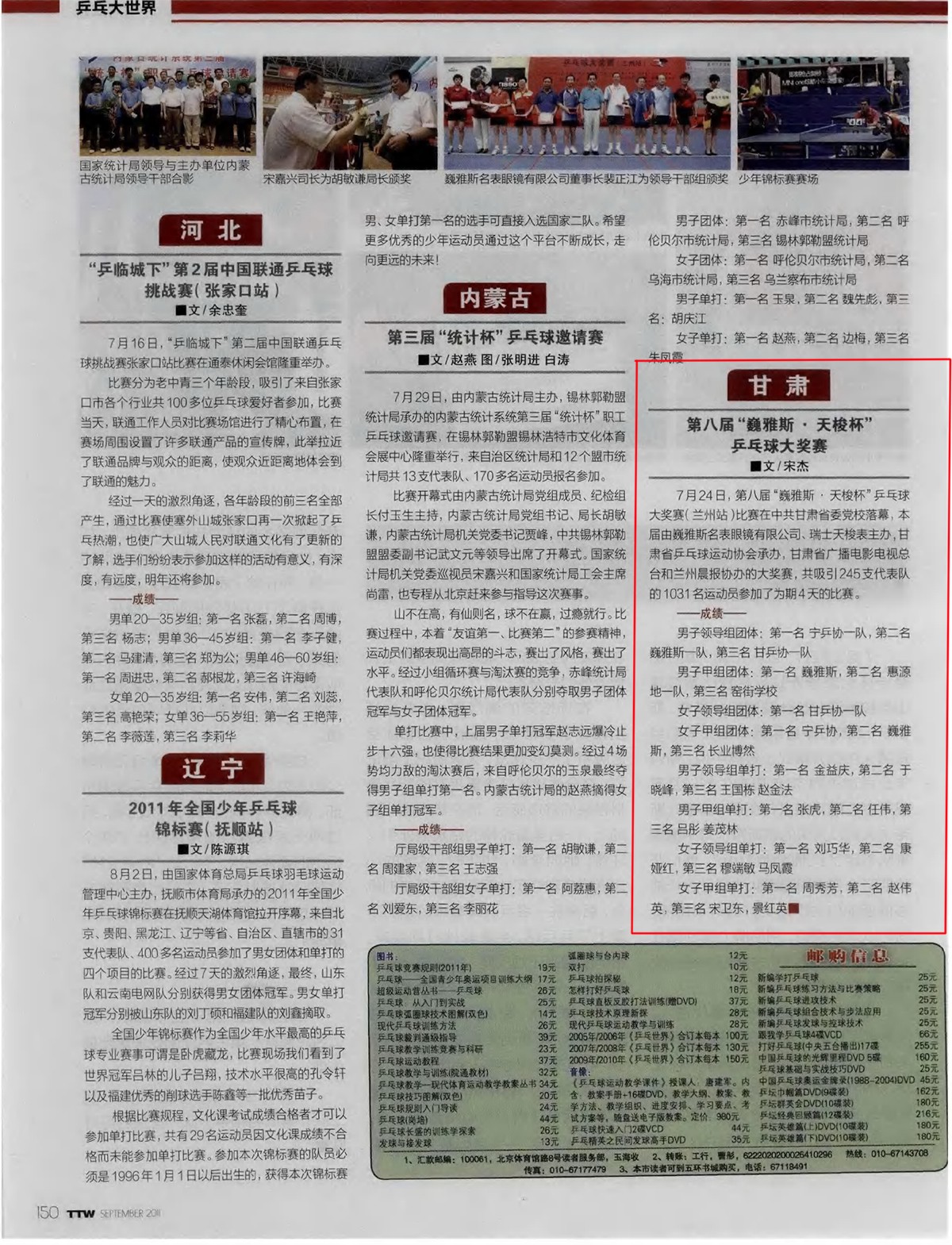 甘肅:第八屆"巍雅斯·天梭杯"乒乓球大獎賽