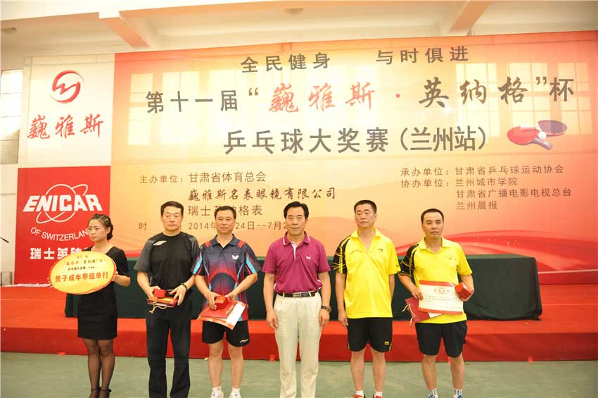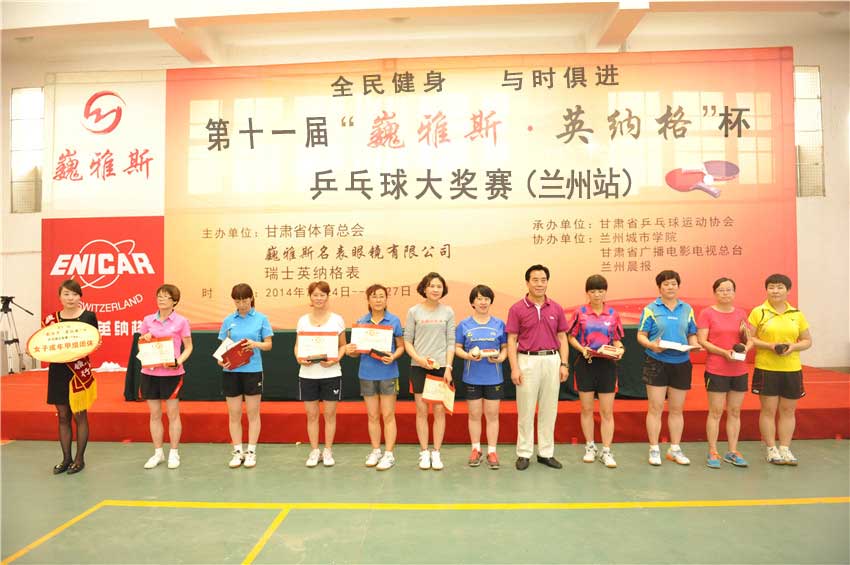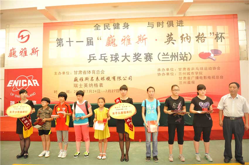 本屆大賽由甘肅省體育總會、巍雅斯名表眼鏡有限公司、瑞士英納格表主辦,甘肅省乒乓球運動協(xié)會承辦,蘭州城市學院、甘肅廣播電影電視總臺、蘭州晨報協(xié)辦。來自甘肅、寧夏、青海、陜西、內(nèi)蒙古、西藏等六?。▍^(qū))的76個俱樂部、188支代表隊的800多名運動員參加了所在組別的團體和單打比賽。最終好朋友一隊的趙義春、巍雅斯一隊的黃春紅等六名運動員分別摘取了5000多元手表大獎,其余110多個獎項也最終花落各家。