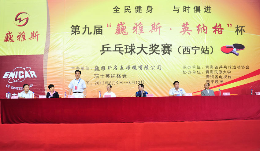 伴隨著國球健兒在倫敦奧運會包攬金牌的喜訊,以“全民健身與時俱進”為主題的第九屆“巍雅斯·英納格”杯乒乓球大獎賽(西寧站), 于八月九日在青海民族大學(xué)小島文體館正式開打。 開幕式由青海省工商聯(lián)黨組副書記、副主席、青海省乒協(xié)主席于興國主持。參加開幕式的領(lǐng)導(dǎo)有青海省人大常委會黨組副書記、副主任沈何,青海省政協(xié)副主席李忠保,國家體育總局乒羽中心乒乓球二部副部長戴啟軍,中國乒協(xié)副秘書長李玉環(huán)、青海民族大學(xué)副校長李生榮、青海省體育總會秘書長張世信等。青海省政協(xié)副主席李忠保,國家體育總局乒羽中心乒乓球二部副部長戴啟軍及中國鐘表商會副會長、甘肅省眼鏡協(xié)會會長、甘肅省乒協(xié)副主席、 巍雅斯名表眼鏡有限公司董事長裴正江在開幕式上分別致辭。 開幕式現(xiàn)場記者采訪了本次大賽贊助商巍雅斯名表眼鏡有限公司董事長裴正江,裴董介紹:參加本屆大賽的有來自甘、寧、青、藏、陜以及內(nèi)蒙古等省(區(qū))的七十八支代表隊、八百多名選手報名參賽。乒乓球愛好者們從五歲的兒童到八十多歲的老將,從普通百姓到機關(guān)干部,男女老少,積極參與;切磋球藝、傳遞友誼,共同提高。 大獎賽分10個組別進行,每個組別均設(shè)有團體和單打兩個項目。本次大賽主辦方提供了價值50萬元以上的獎品,且每位參賽運動員均可獲贈價值258元的紀(jì)念獎。 2002年至今,由巍雅斯名表眼鏡有限公司贊助,分別在蘭州和銀川舉辦了八屆“巍雅斯”杯乒乓球大獎賽。為青海、甘肅、寧夏三?。▍^(qū)),以及西藏(拉薩)、內(nèi)蒙(左旗、烏海)、陜西(西安、定邊、榆林)等地區(qū)的乒乓球愛好者提供了一個良好的健身、鍛煉、交流和提高的平臺。 裴董事長表示:為感謝六省區(qū)廣大消費者多年來的支持和厚愛,巍雅斯將一如既往的為光彩事業(yè)和乒乓球運動奉獻愛心,將“巍雅斯”杯乒乓球大獎賽作為企業(yè)文化的主要內(nèi)容,一屆勝似一屆的連續(xù)舉辦下去。辦成西北地區(qū)乒乓健兒一年一度的歡聚盛會,辦成六省區(qū)具影響力的國球品牌賽事。