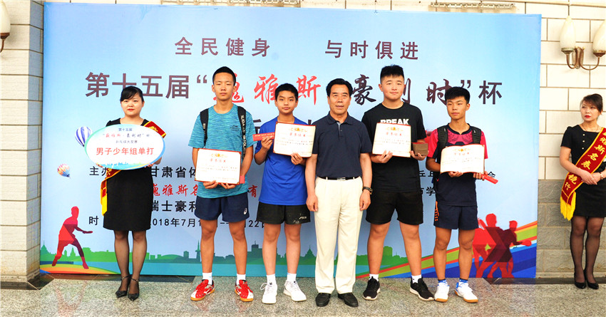 中國鐘表商會(huì)副會(huì)長、甘肅省眼鏡協(xié)會(huì)會(huì)長、甘肅省乒協(xié)副會(huì)長、巍雅斯名表眼鏡有限公司董事長裴正江、甘肅省乒乓球運(yùn)動(dòng)協(xié)會(huì)會(huì)長韓力、原蘭州城市學(xué)院院長王汝鋒、巍雅斯名表眼鏡有限公司副總裁裴明宏、甘肅省乒乓球運(yùn)動(dòng)協(xié)會(huì)秘書長宋建農(nóng)、裁委會(huì)主任石振民、夲次大獎(jiǎng)賽裁判長關(guān)欣出席頒獎(jiǎng)儀式并為獲獎(jiǎng)代表隊(duì)和運(yùn)動(dòng)員頒獎(jiǎng)。