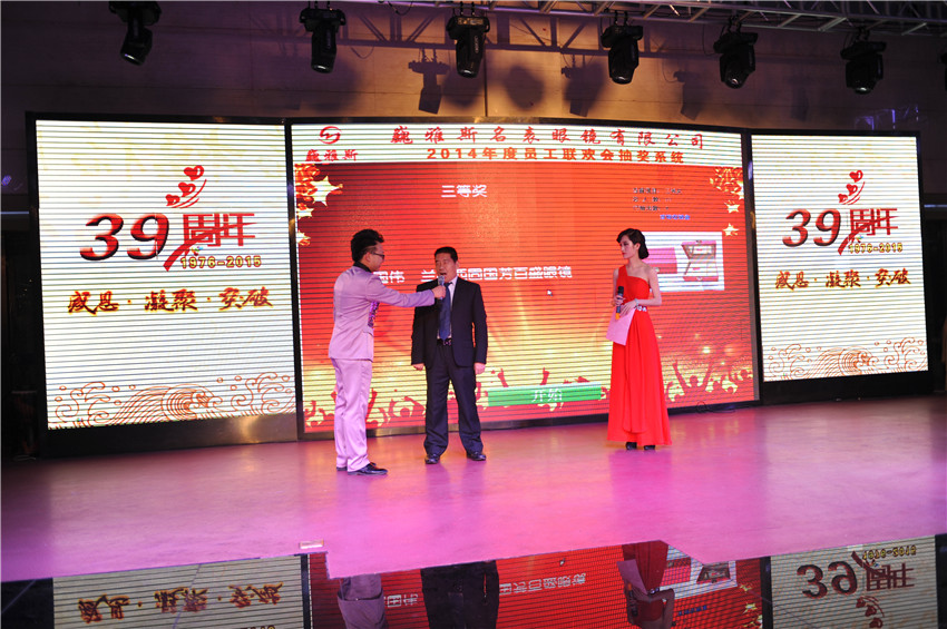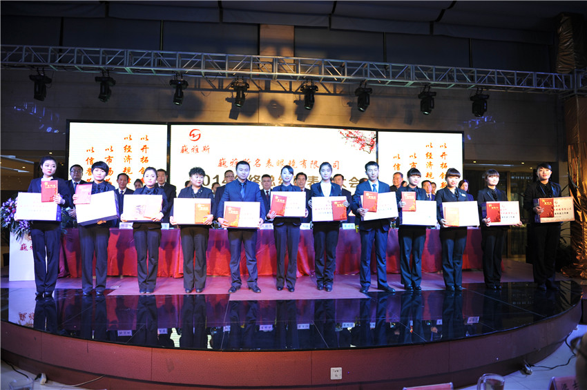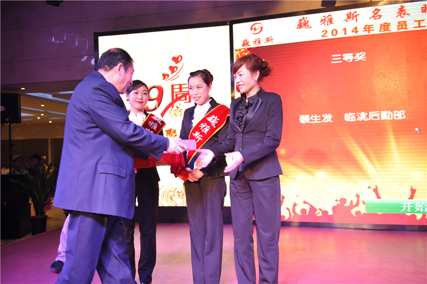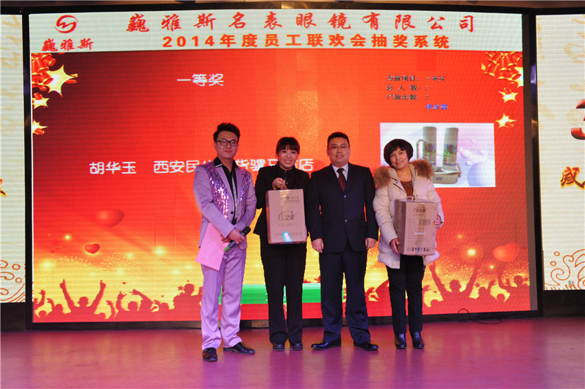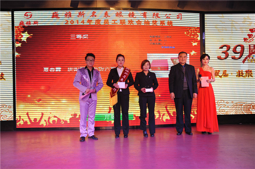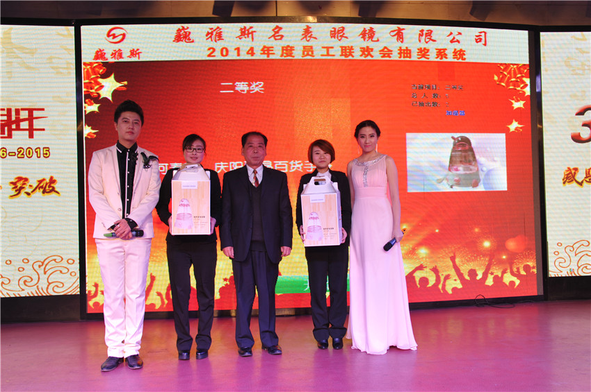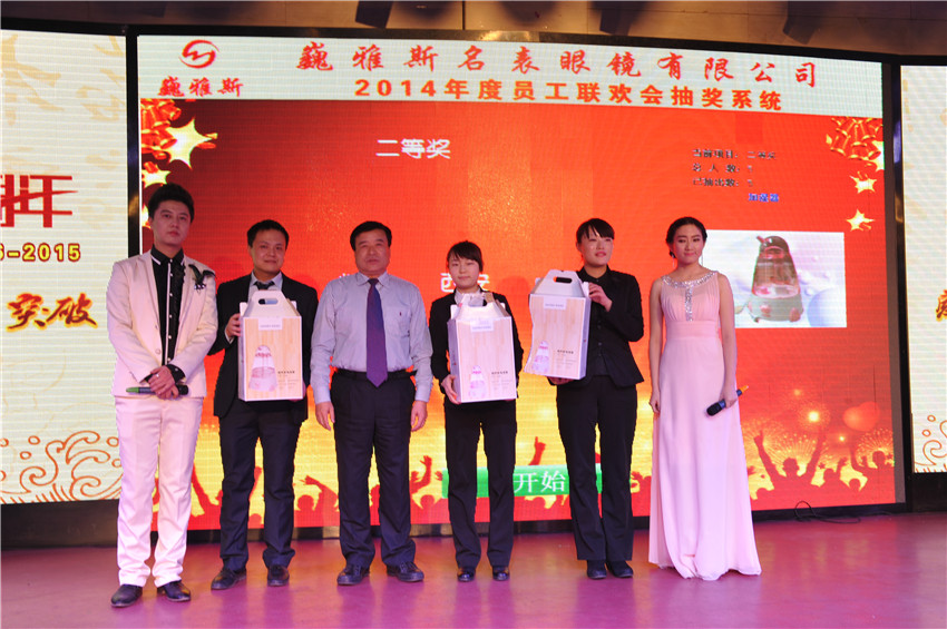 在總結(jié)暨表彰大會(huì)上,巍雅斯名表眼鏡有限公司總裁就2014年各分公司和部門(mén)的各項(xiàng)情況做了總結(jié),對(duì)2015年的各項(xiàng)工作提出了規(guī)劃及要求。并指出:在過(guò)去的2014年雖然受整體經(jīng)濟(jì)環(huán)境的影響,但巍雅斯名表眼鏡有限公司的各項(xiàng)業(yè)績(jī)均取得了預(yù)期的目標(biāo)。相信2015年,在公司上下的團(tuán)結(jié)努力下,將會(huì)取得更輝煌的成就??偨Y(jié)暨表彰大會(huì)隨后表彰了在2014年涌現(xiàn)出的35名“先進(jìn)工作者”及5個(gè)“先進(jìn)集體”。在隨后舉行的2014年度員工聯(lián)歡會(huì)上,來(lái)自各分公司(分部)選送的精彩聯(lián)歡節(jié)目和幸運(yùn)抽獎(jiǎng)為所有的參會(huì)人員帶來(lái)了歡樂(lè),將聯(lián)歡會(huì)的氣氛推向了高潮。