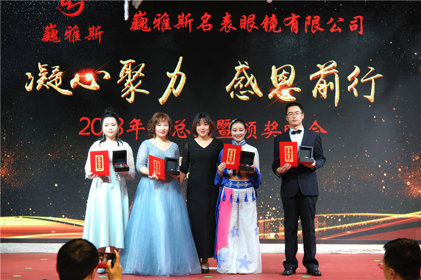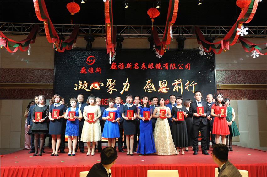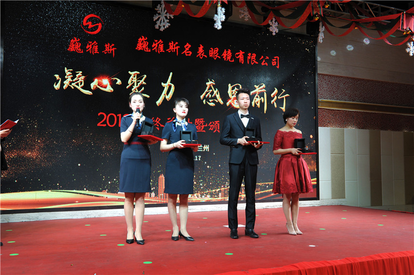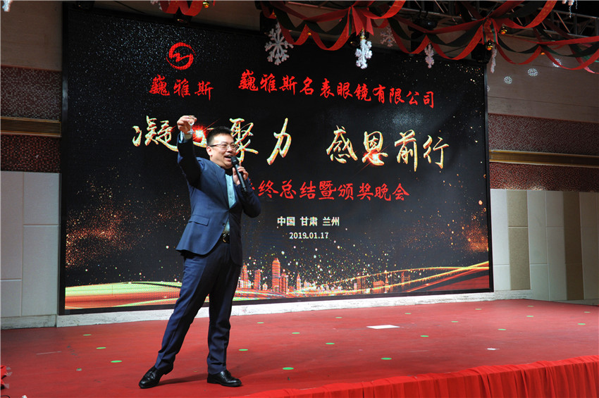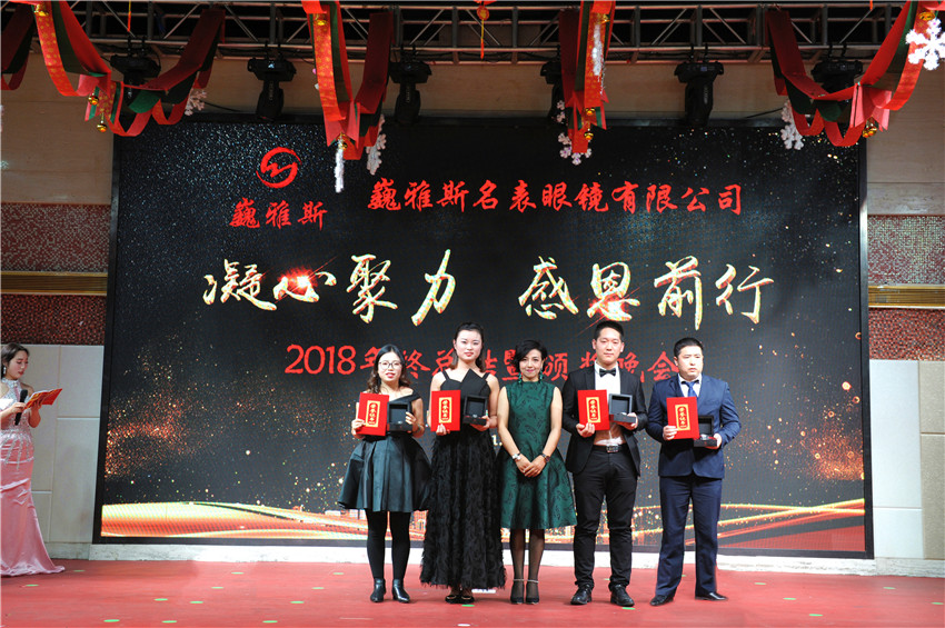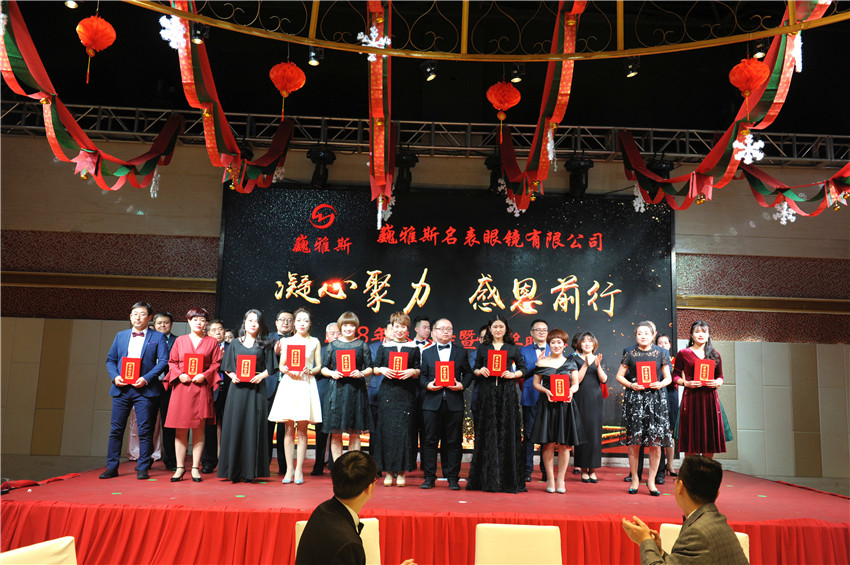 1月17日下午,巍雅斯名表眼鏡有限公司2018年終總結(jié)暨頒獎晚會在蘭州舉行,本次年會以“凝心聚力、感恩前行”為主題,來自公司各個部門,以及臨洮、蘭州、西安、銀川等分公司及西寧分部的中高層管理人員、優(yōu)秀員工、入職5年以上的一線員工代表等200多人出席了本屆年會。