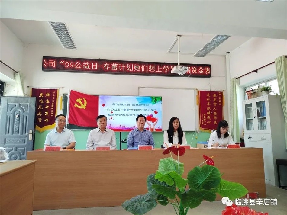 “小康大業(yè),人才為本,人才強(qiáng)國、教育興邦。”5月24日下午,在臨洮縣辛店中學(xué)舉行了臨洮縣婦聯(lián)、 巍雅斯“99公益日-春蕾計(jì)劃她們想上學(xué)”募捐資金發(fā)放暨關(guān)愛活動(dòng)儀式。臨洮縣婦聯(lián)主席孫碧蘭 、巍雅斯名表眼鏡有限公司董事長裴正江、巍雅斯名表眼鏡有限公司副總經(jīng)理裴明宏、辛店鎮(zhèn)人民政府副鎮(zhèn)長鄧小英、辛店中學(xué)校長孫新華出席了儀式。