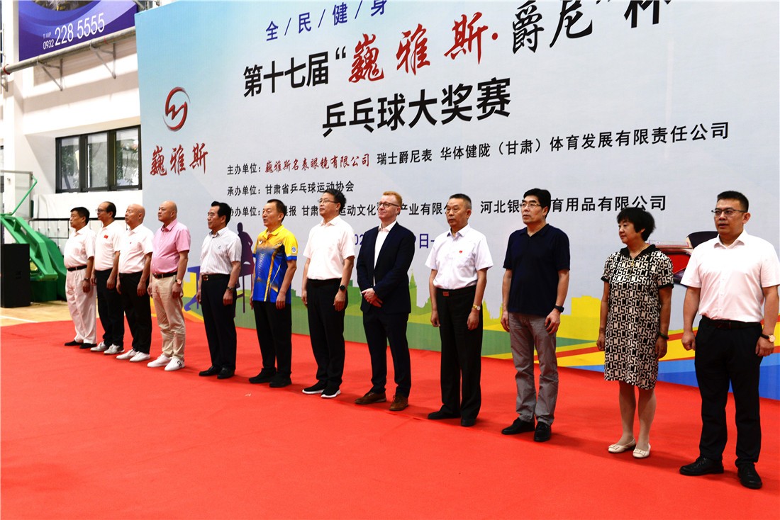 中國(guó)鐘表商分會(huì)副會(huì)長(zhǎng)、甘肅省眼鏡協(xié)會(huì)會(huì)長(zhǎng)、甘肅省乒乓球運(yùn)動(dòng)協(xié)會(huì)副會(huì)長(zhǎng)、巍雅斯名表眼鏡有限公司董事長(zhǎng)裴正江,瑞士爵尼手表全球總裁帕特里克.丹尼爾.薩拉丁,瑞士爵尼遠(yuǎn)東有限公司董事長(zhǎng)兼總裁陳道信及有關(guān)領(lǐng)導(dǎo)、運(yùn)動(dòng)員、裁判員、教練員、工作人員一起參加了簡(jiǎn)樸但氣氛熱烈的大獎(jiǎng)賽開(kāi)幕式。