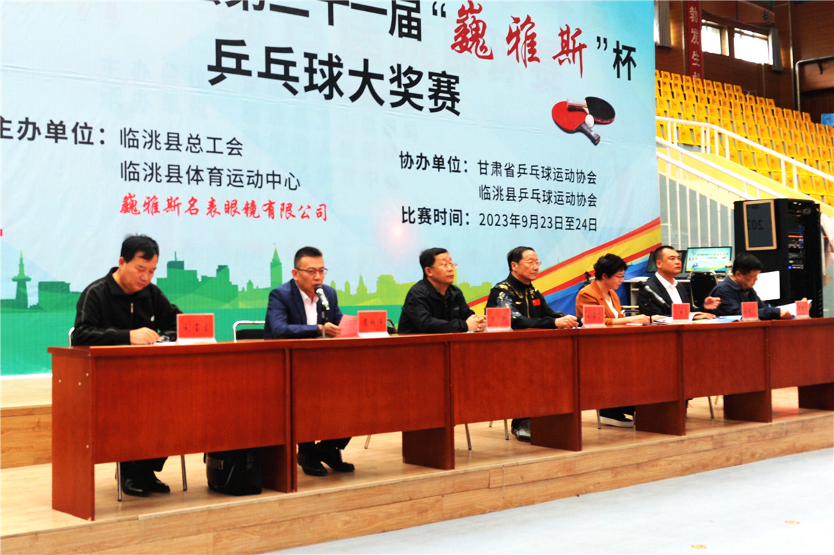 甘肅省教育廳后勤中心主任、甘肅省乒乓球運(yùn)動(dòng)協(xié)會(huì)副會(huì)長張占學(xué)、臨洮縣人大常委會(huì)副主任、臨洮縣總工會(huì)主席劉映菊、巍雅斯名表眼鏡有限公司總裁裴明偉、臨洮縣總工會(huì)常務(wù)副主席田科、臨洮縣體育運(yùn)動(dòng)中心主任晏進(jìn)軍、巍雅斯名表眼鏡有限公司總裁裴明宏、臨洮縣乒乓球協(xié)會(huì)主席劉寶生等來賓參加開幕式。