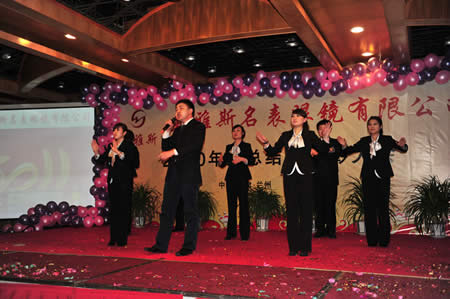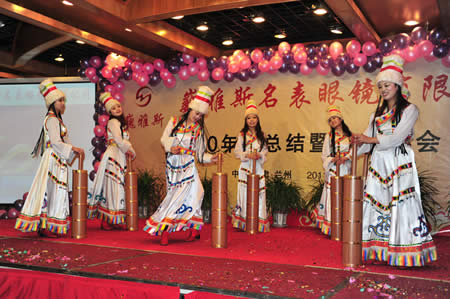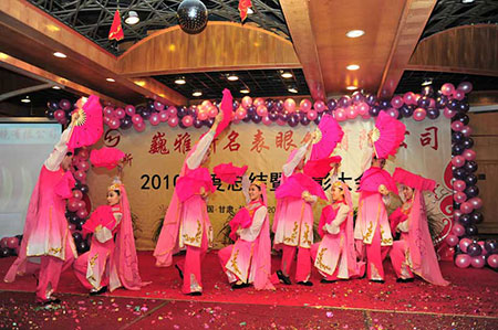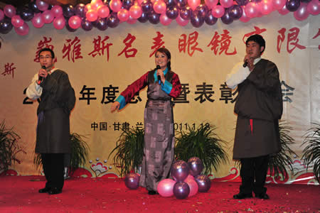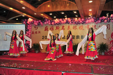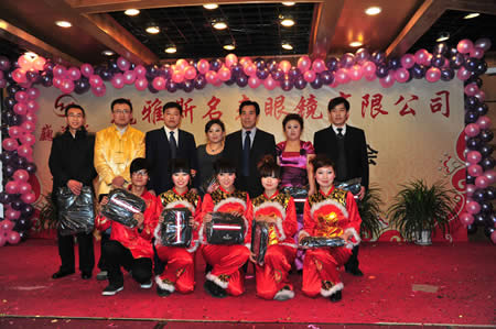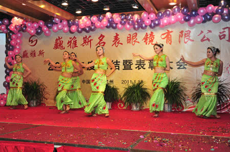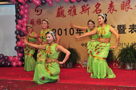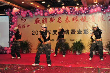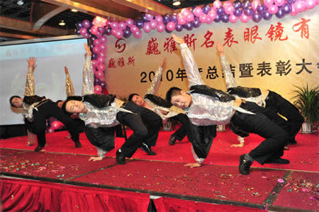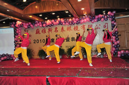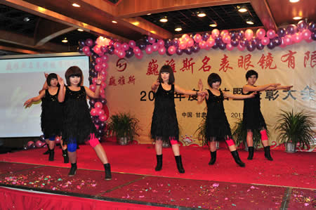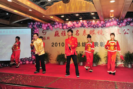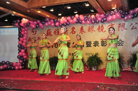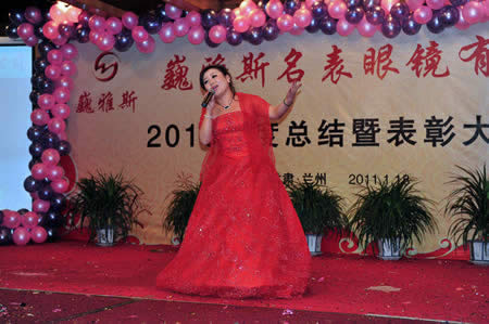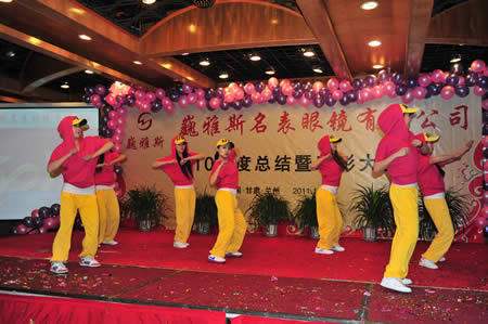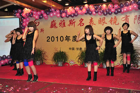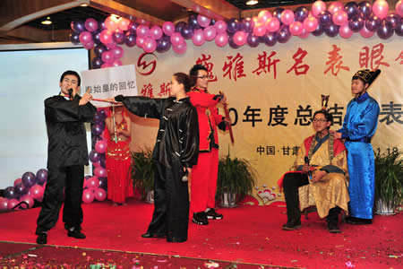 2011年1月18日,巍雅斯名表眼鏡有限公司2010年度總結暨表彰先進大會在蘭州錦江陽光酒店舉行,來自西安、銀川、西寧、拉薩、天水等地的部分員工240多人歡聚一堂,共敘友誼、共商發(fā)展,會餐后舉辦了豐富多彩的聯(lián)歡晚會。前來走訪的以經(jīng)營古馳、迪奧、BOSS、阿瑪尼等高端眼鏡品牌為主的意大利霞飛諾集團中國區(qū)總裁雅各布(Jacopo)先生及日本尼康鏡片西北區(qū)業(yè)務經(jīng)理張海青先生也興致勃勃的參加了晚宴和聯(lián)歡晚會。